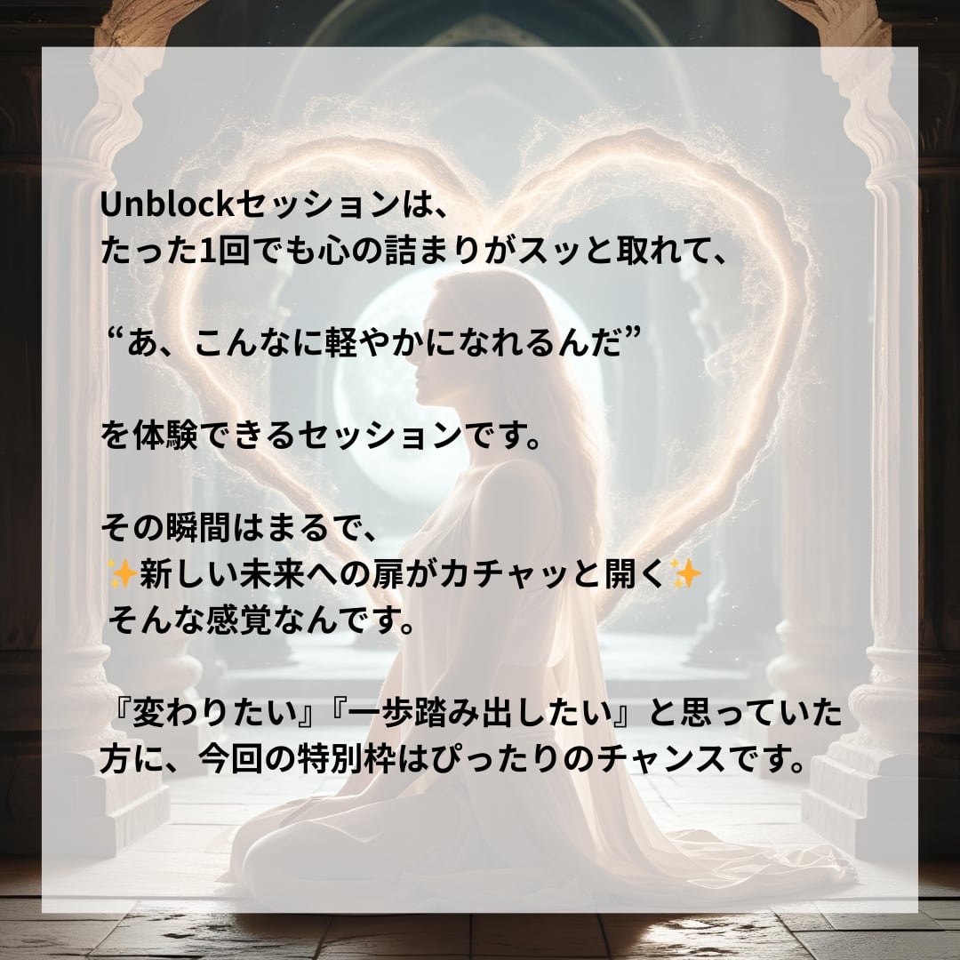 ■心の詰まりを解消して未来を切り拓く「Unblockセッション」を体験しませんか?